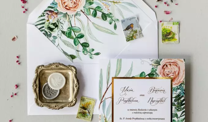 Kiedy już design zaproszeń ślubnych został wybrany, czas zastanowić się nad formą tekstu w nim zawartego. Najważniejsze informacje, jakie powinny zostać w nim przekazane to: